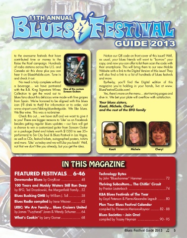 hear it on BluesMobile.com. Tune in will also fi nd a link to a list of hundreds of blues festivals