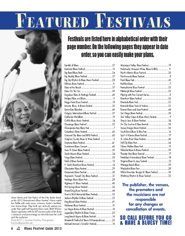 Highway 61 Blues Festival.........................................40 The publisher, the venues,