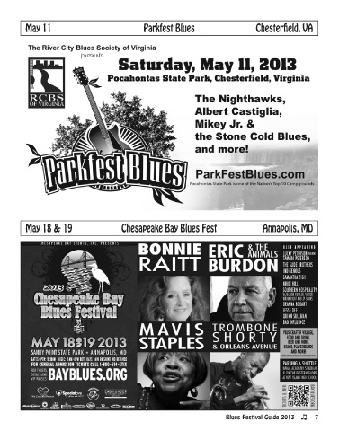 May 11 Parkfest Blues Chesterfield, VA May 18 & 19 Chesapeake Bay Blues Fest Annapolis, MD Blues Festival Guide 2013 7